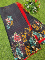 Saree Fabric : Georgette                                                                                                                                                                    Colour : Black                                                                                                                                                                                       Blouse : Red                                                                                                                                                                                         Black Georgette Digital Printed Zari Stripes Saree With Unstitched Blouse